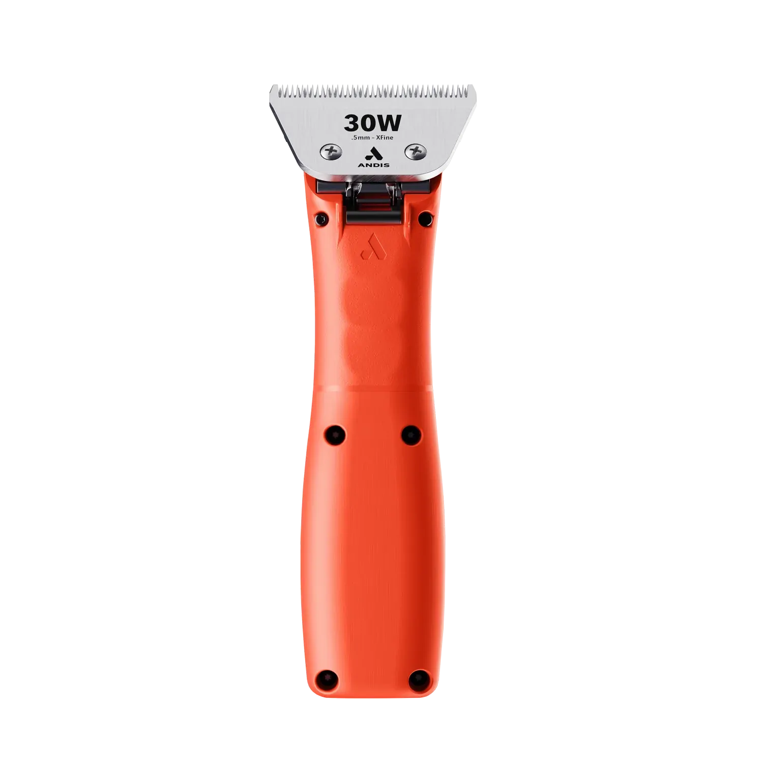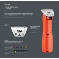 The Andis eMERGE Orange Corded/Cordless Clipper delivers superior control, speed, and efficiency—now equipped with the CeramicEdge #30W Wide Blade for faster grooms and smoother results. This high-performance grooming tool features a powerful 3,800 SPM rotary motor, a sleek ergonomic shape, and cordless/corded versatility, making it a must-have for busy groomers. Powerful lithium-ion battery has a 1.5 hour run time from a 1 hour charge.