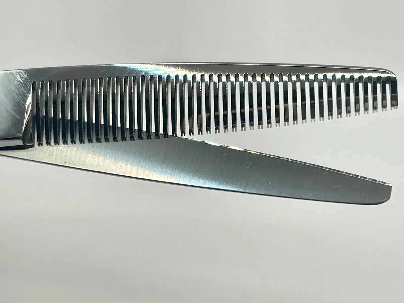 These scissors have additional micro serrated edges on the end of each individual scissor tooth. These additional edges help ‘grab’ the coat as the scissor’s blades are closing and allowing the cut to be more precise. Additionally, the micro-serrated edges hold hair in place while scissoring.