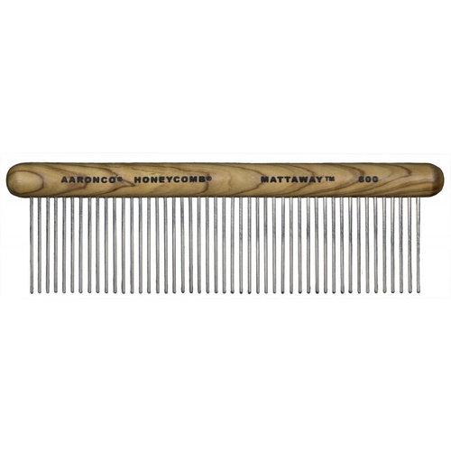 The Aaronco Mattaway Wood Handle Comfort Comb #800 features an ergonomic wooden handle designed for comfort and control.