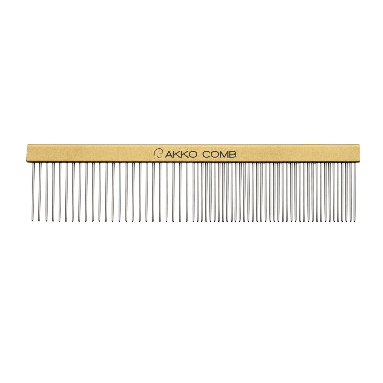 The combined comb 20 cm - 24/38T "AKKO DUBAI" is designed to work best on any type of dog hair. The shape of the conical tooth, with a diameter of 1.58 mm, allows you to perfectly hook the hair at the base and extend it, for a correct final finish.
