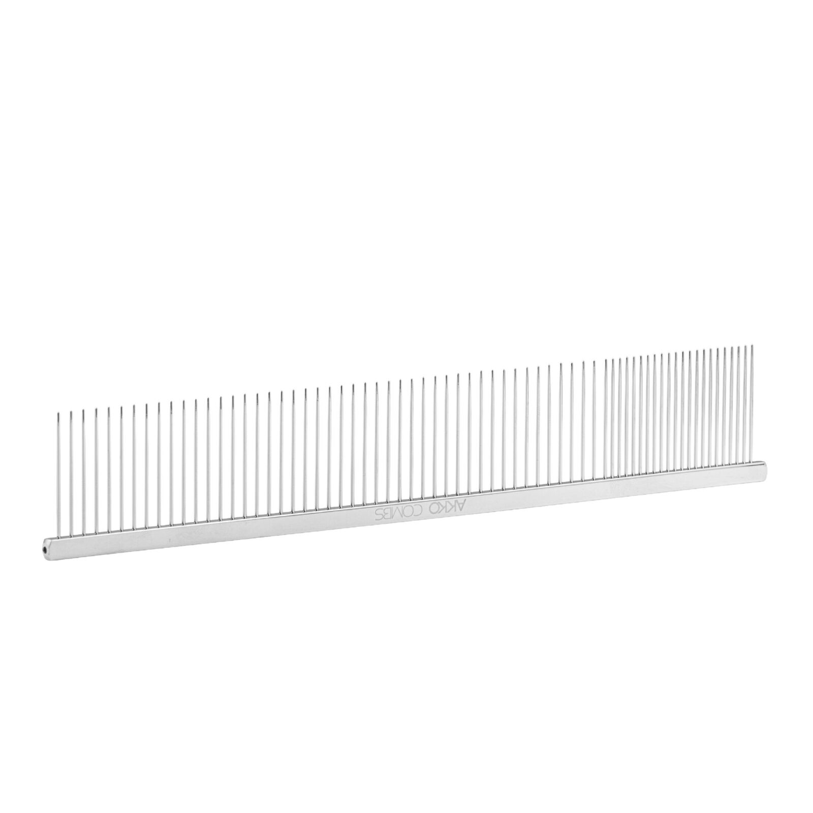 The Combined Comb "AKKO LAILA" is made of stainless steel with ultra-smooth nickel plating. Designed for quality work and to slip through the dog's hair without getting tangled or causing discomfort to the animal.