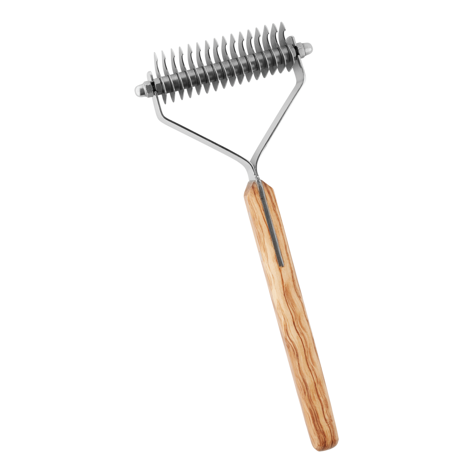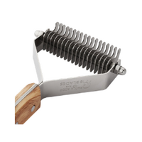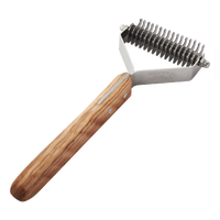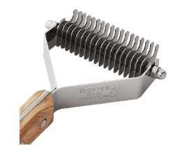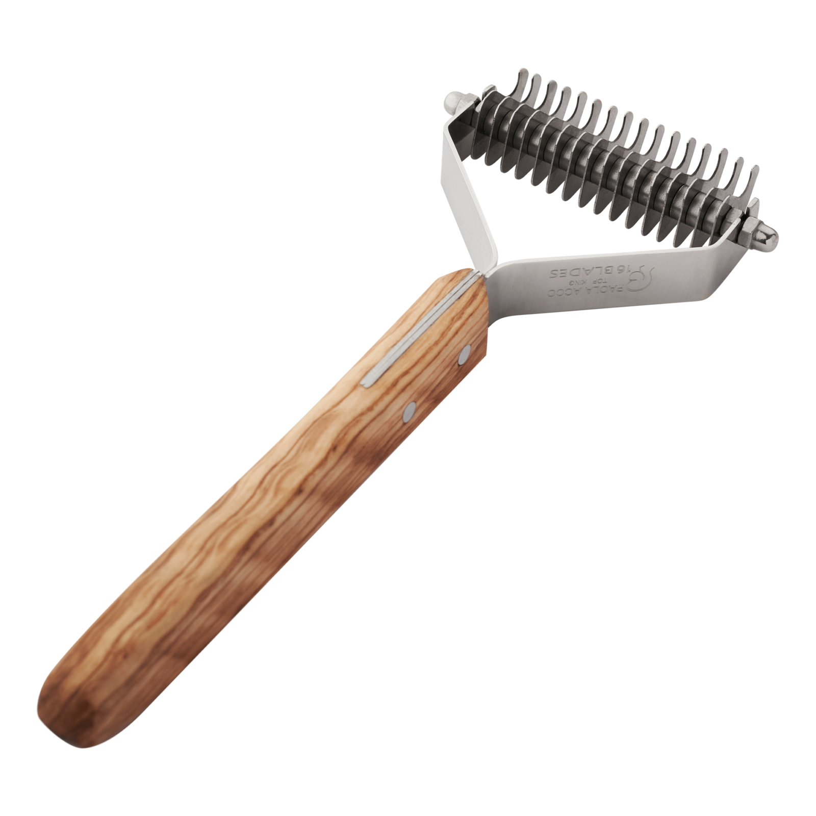 The professional rake-shaped rake, with a hand-carved wooden handle, used to facilitate the work of the professional during pre-Stripping or for dogs in a muoulting state. The Coat King allows you to remove large areas of fluffy (or dead) hair in a short time. Stainless steel teeth work without pulling or damaging the dog's skin. The professional rake also gently removes more stubborn knots, dead hair or excess underhair.