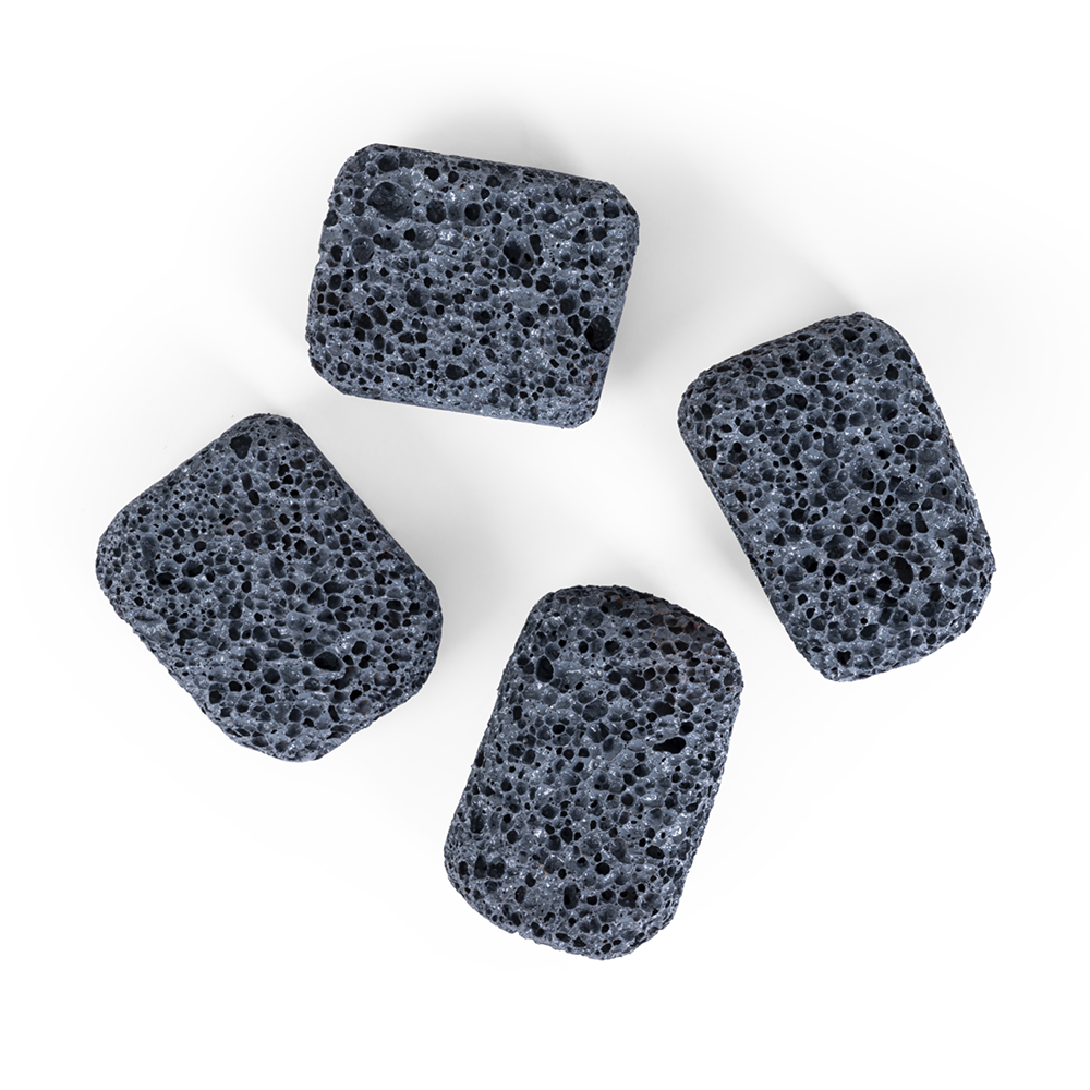 BLACK PUMICE: small and regular-shaped stone, of little porous consistency.