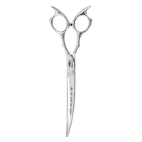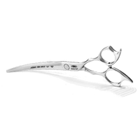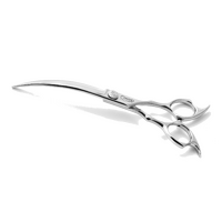 Ideal for small and medium breeds, exceptional for creative and Asian style cuts and for finishing. The Asian Max Curved Scissors are 7” long and can be used with the curve facing either the dog or the groomer thanks to the symmetrical handles, which make them reversible.