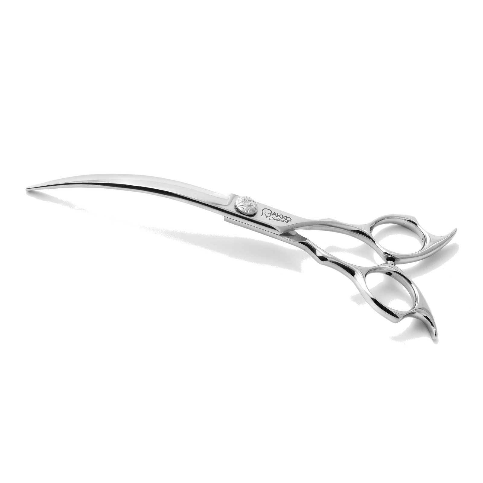 DEGREE OF CURVATURE: there are different degrees of curvature of the blades, but the most common on the market are blades with a curvature of 15° (e.g. Magic Ball 15° by Akko Scissors) or 30° (e.g. Asian Game 30° by Akko Scissors or Boombastik by Akko Scissors): those with a 15° curvature are used for larger areas (e.g. legs, rib-cage), while the 30° blades, being much more curved, are more suitable for decidedly more rounded areas (e.g. Asian-style muzzles and heads). The latest concept in terms of curvature consists of blades with a 40° curvature (e.g. Asian Moon 40° by Akko Scissors) or even a 45° curvature (e.g. Asian Max 45° by Akko Scissors), which allow you to quickly create any rounded shape, even the most extreme, with just a few snips, for example on small heads, moustaches and beards, details of feet and folds of flank, even on small dogs, reducing working times.