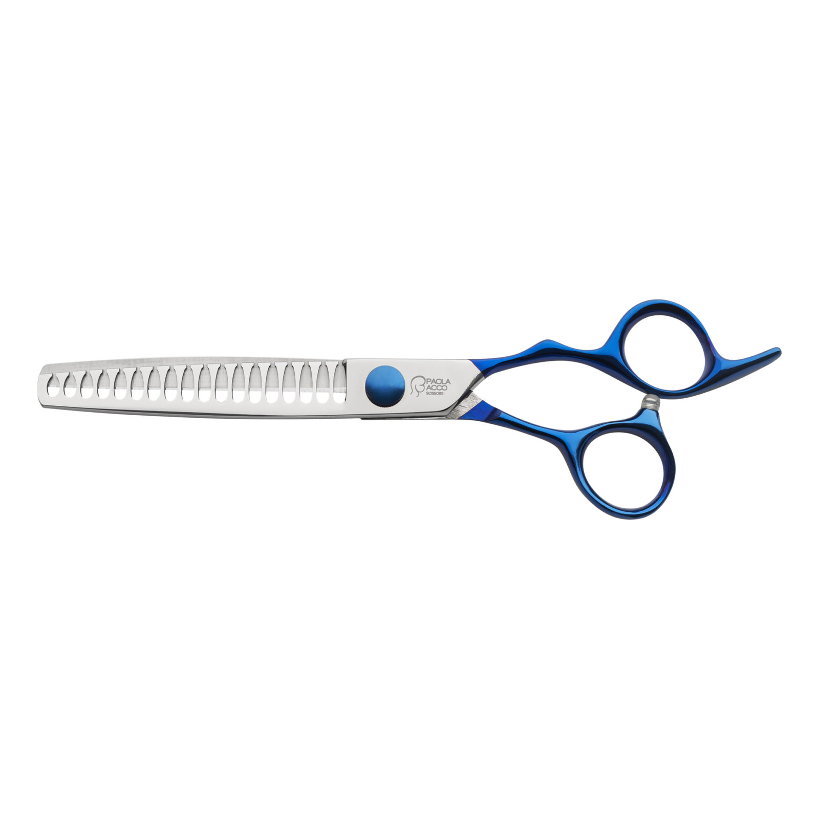 CHUNKERS 7′′ – 18T – Very strong scissors, but at the same time, surprisingly comfortable. Excellent for all semi-long, double, semi-rough, long and silky hairs. The powerful teeth cut cleanly and with little effort, all the curly hair, but also the less abundant and fluffy ones. Holding the scissors with different inclinations, the percentage of hair removed changes. – Measures 7′′