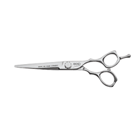 ASIAN GAME Straight Scissors are extremely lightweight and compact, measuring only 6.5 inches in length. They are specifically designed for small dogs or for detailed trimming, such as around the muzzle and feet.