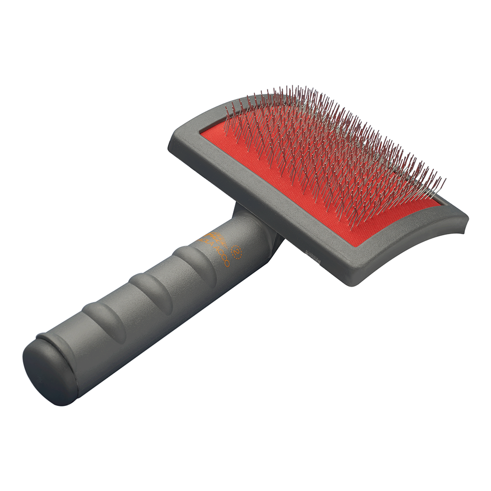 The“AKKO BRUSH #2” Slicker is an essential tool in grooming salons, designed for daily coat management and for quick, effective detangling of light to moderate knots. Suitable for all medium to long-haired breeds (not recommended for short coats), it is ideal for maintaining a tangle-free coat, preventing new knots from forming, and completing the detangling process started with the Akko Brush #1 slicker.