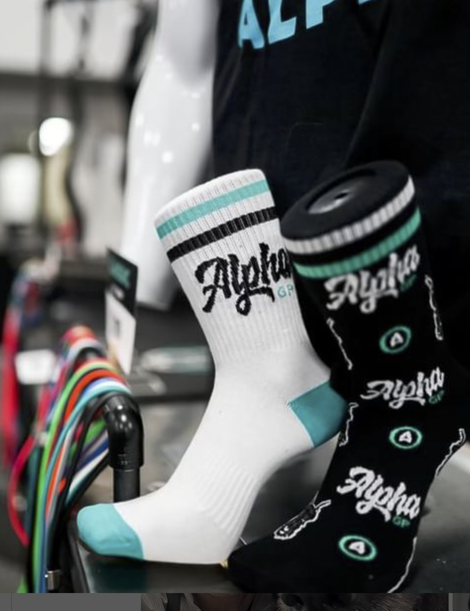 Represent your Alpha AF-ness with this set of three, custom-printed socks.
