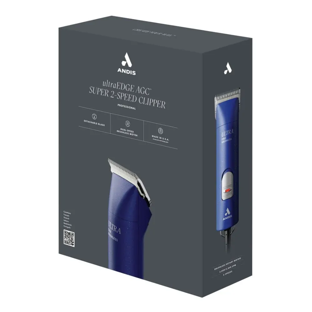 The Andis UltraEdge AGC Brushless Super 2-Speed Clipper in Cobalt Blue is the go-to choice for groomers who demand powerful, reliable performance with less weight and noise. This new-generation model is a major upgrade to the classic AGC, now fitted with a cutting-edge brushless motor that’s quieter, cooler running, and more efficient.