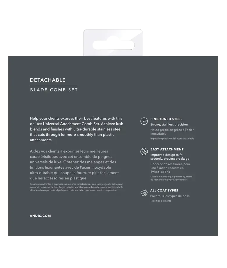Your tools should enhance your creativity, not limit it. Fuel the full expanse of your passion with this Universal Stainless-Steel Attachments Comb Set—enduring, versatile tools for showing off your skills.