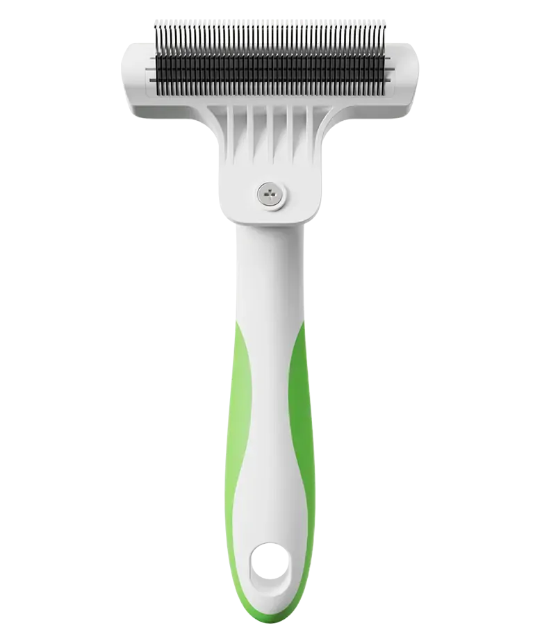 The Andis Fine Tooth Deshedding Rake maintains the coat without damage to the topcoat. Used by professionals, stainless steel teeth help remove the excess fur to promote a healthy coat. The ergonomic, no-slip grip sits comfortably in your hand, whether you’re taming terrier coats or deshedding a cat in the salon. This high-quality Andis tool not only keeps fur fresh, it also reduces shedding by up to 90%.