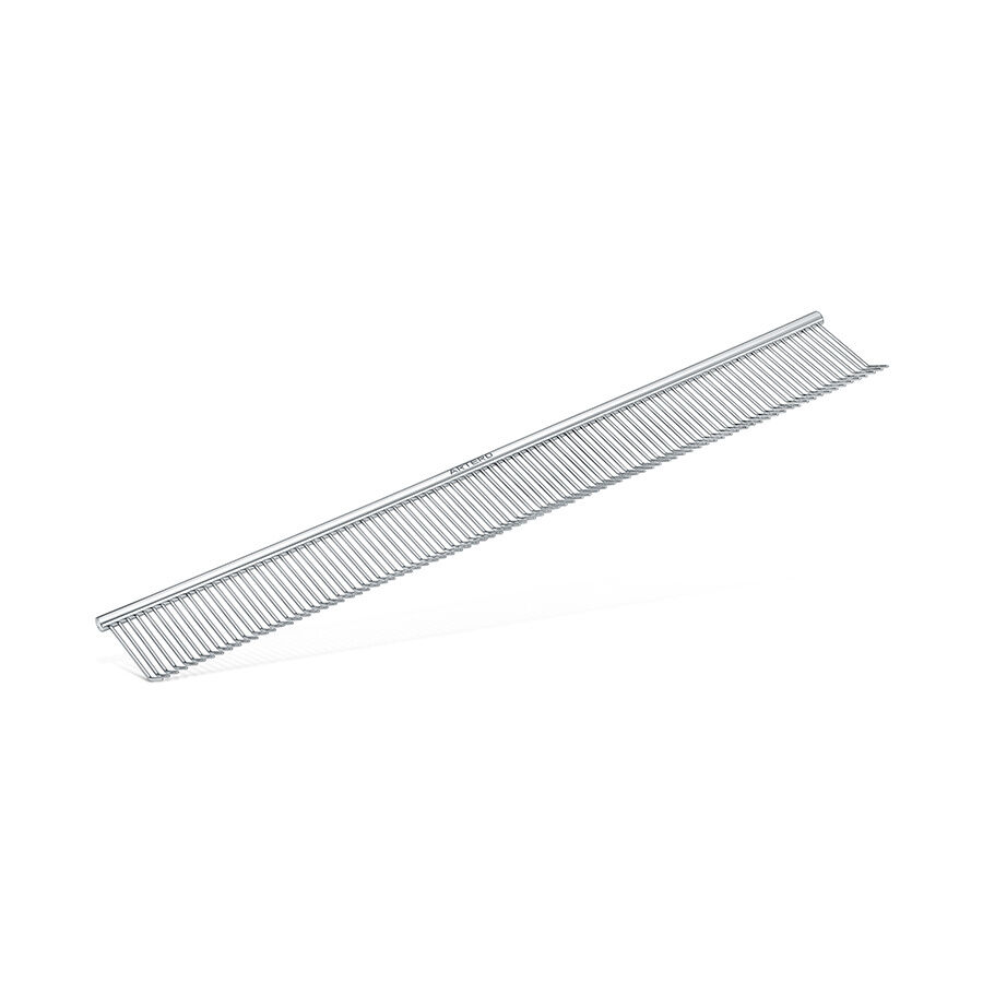 Dog finishing comb with copper handle and stainless steel pins, with nickel-plated mirror effect coating. The angle of its pins manages to help lift the hair and lift it with greater comfort, its coating with a slide penetrates the mantle easily to stretch from the root. The high-quality material of the picks gives memory to the shape so that when we force the spikes they recover their position immediately.