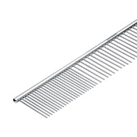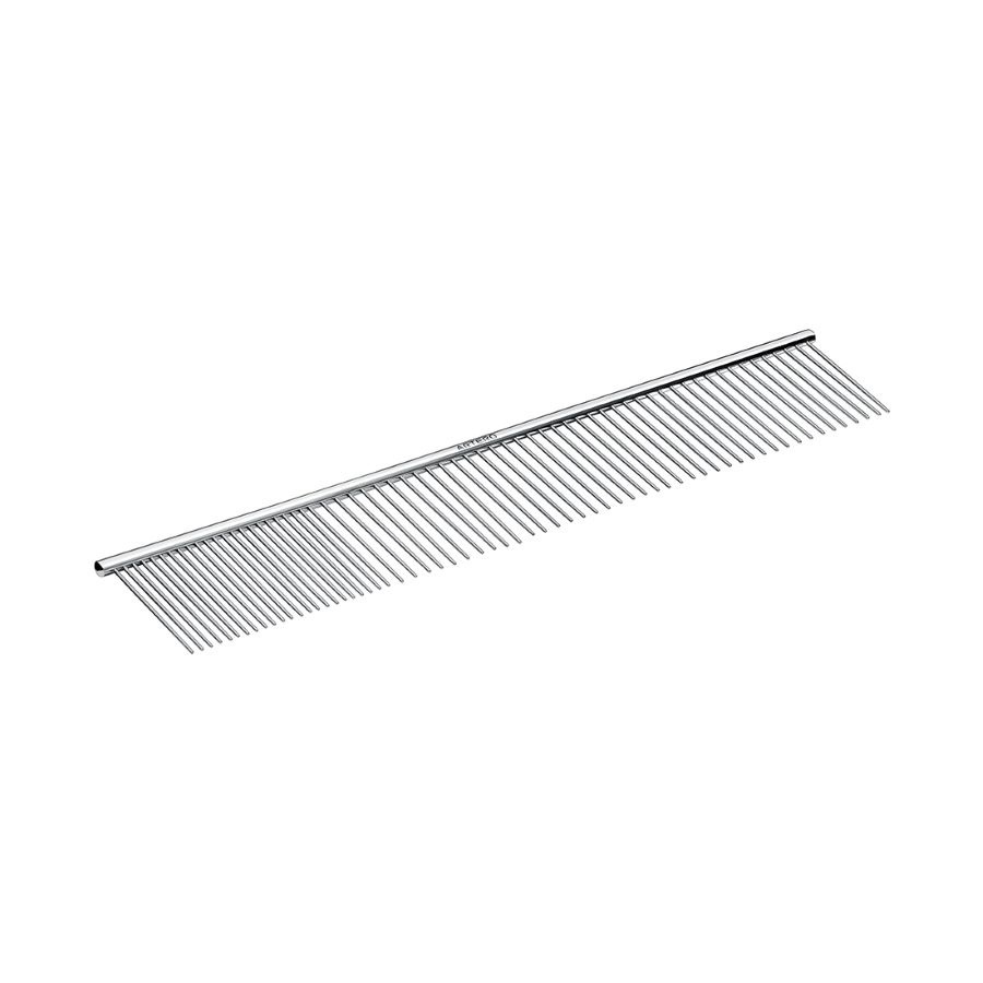 Metal comb with green galvanised coating which prevents rust and helps the teeth to glide through the hair. With 91 regularly spaced teeth with tapered tips, ideal for cutting the coats of curly-haired dogs. It adds volume and separates the hair to position it during cutting. Not recommended for knots or tangles.