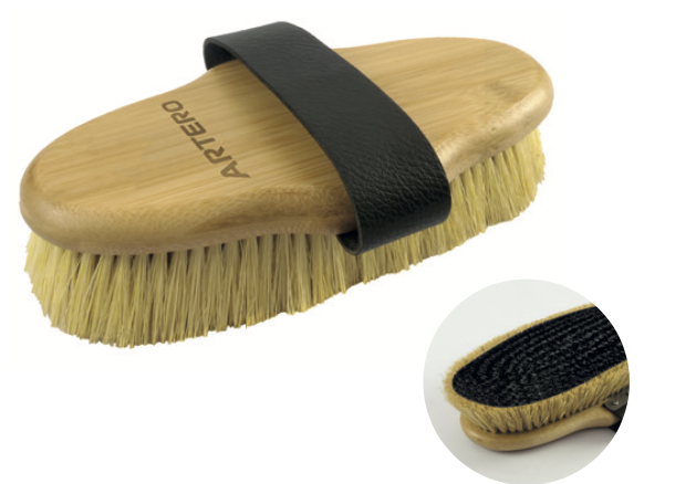 -Adjust the brush in the hand, in such a way that the strap surrounds it and the palm is on the bamboo base. The movements made will have greater precision, without the possibility of damaging the horse's skin.