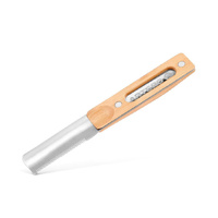 Stripping blade with concave bamboo handle on one side with finger rest on the other.