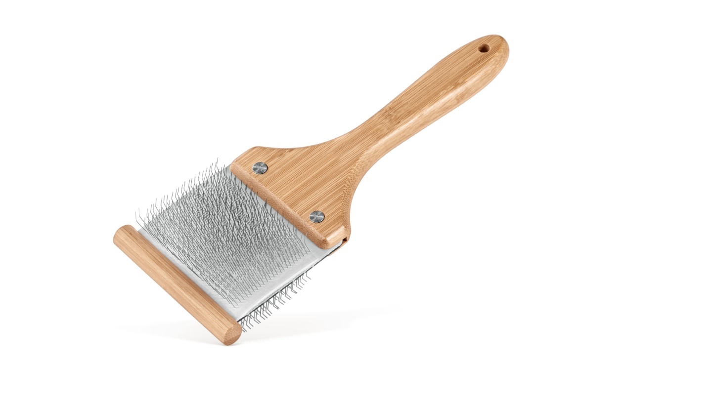 How to use: hold the slicker brush by the handle and present one of the spiked faces on the coat, slide the tines along the coat in the direction of the handle. Repeat throughout the hair. To stretch it is recommended to brush against the grain. When there is a lot of hair trapped between the spikes, we must remove it with our hands or a comb.