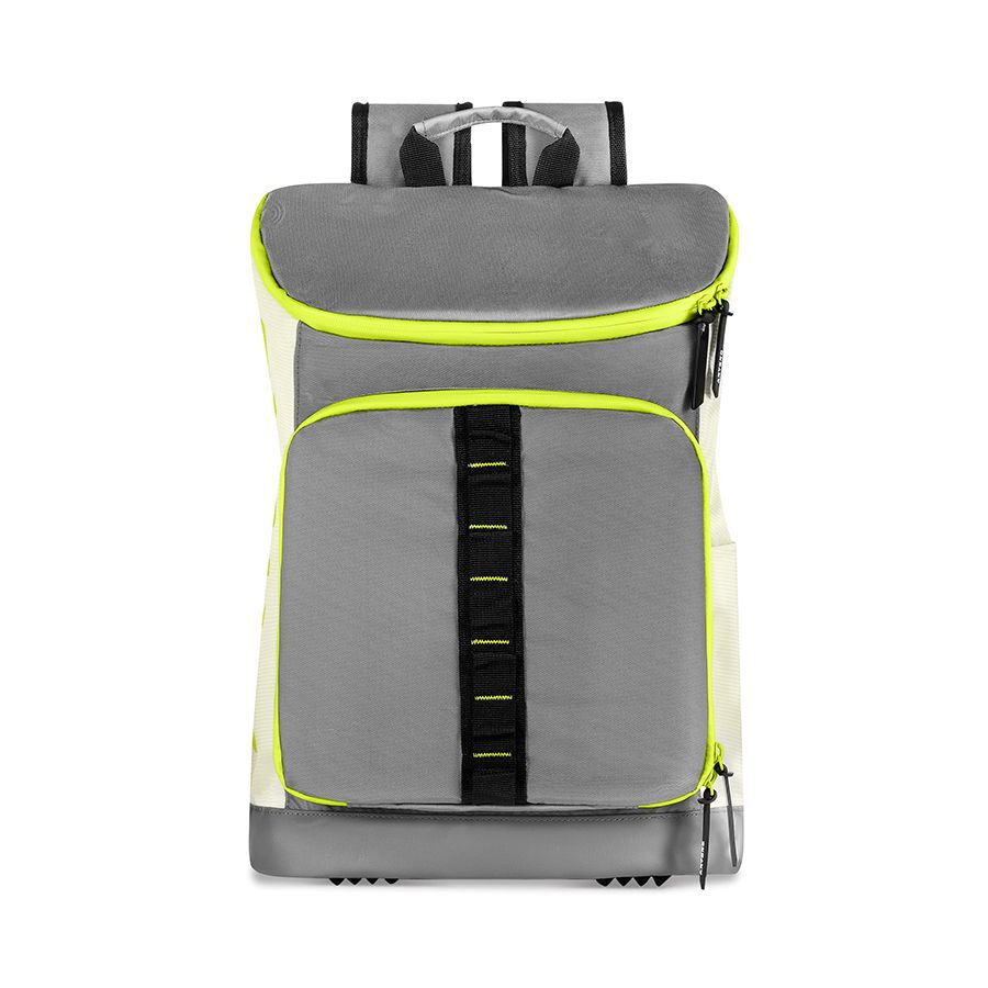 Fill the container spaces with product and cosmetics. Close the zippers of the pockets. Pass each arm through each handle fixing it to the back.