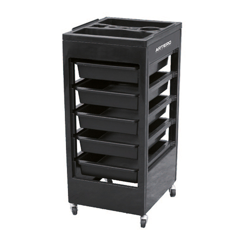 A 5 Drawer Work Station, with a Sectioned Work Top, on 4 Independent Wheels for Easy Manoeuvring Around the Salon.