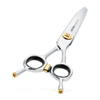 Symmetrical short handle and integrated finger rest that allows you to work on both sides of the scissors as we are interested in using it in concave or convex. An ideal scissors to give curved, angled and spherical shapes and finishes in thick hair.