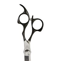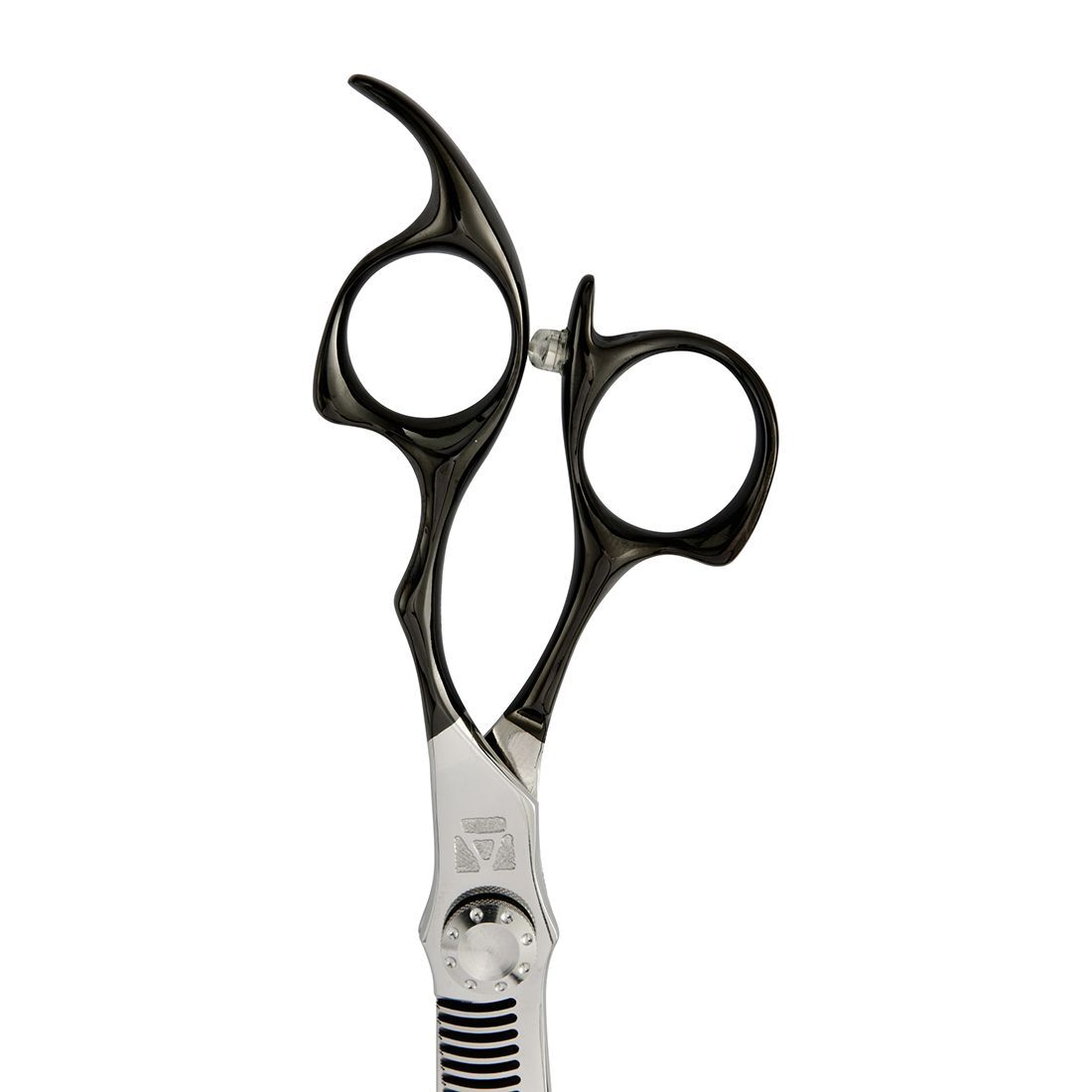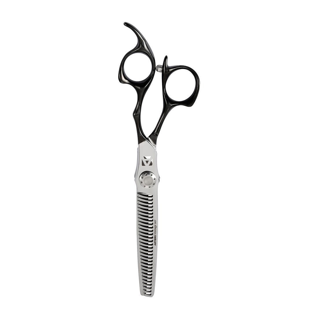 The Vintage scissors stand out for their black design on the handle and retro lines in 440c Japanese steel, with a self-adjusting blade mechanism for each hand, adapting to the pressure and force exerted. Its serrated blades blur and smooth creating cuts of crystalline structure without demarcations.