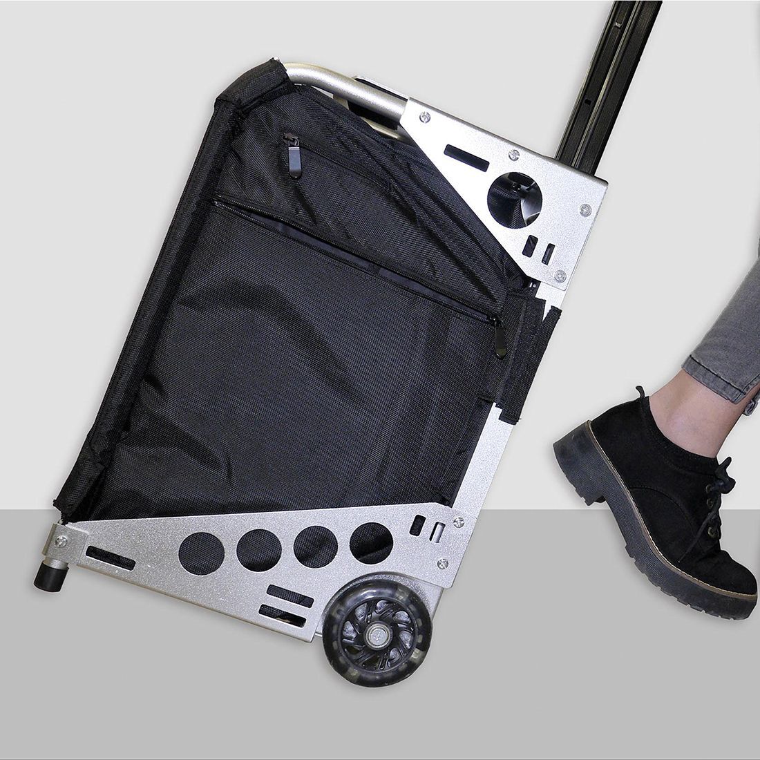 Telescopic handle and 2 wheels for easy tote. Dimensions: Size: H50cm, W39cm, D35cm