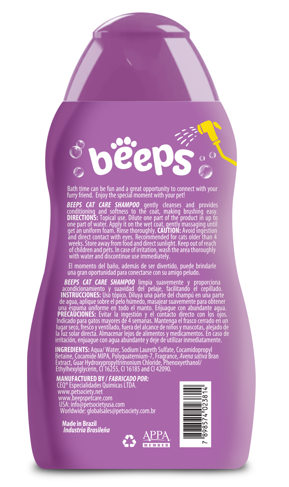 Scrub your best bud with Beeps Cat Care Cat Shampoo. This gentle formula helps hydrate and soothe. It also works to cleanse and condition her coat for a lustrous finish! This shampoo leaves behind a light and pleasant grape scent and is purr-fectly suitable for cats and kittens older than 4 weeks old.
