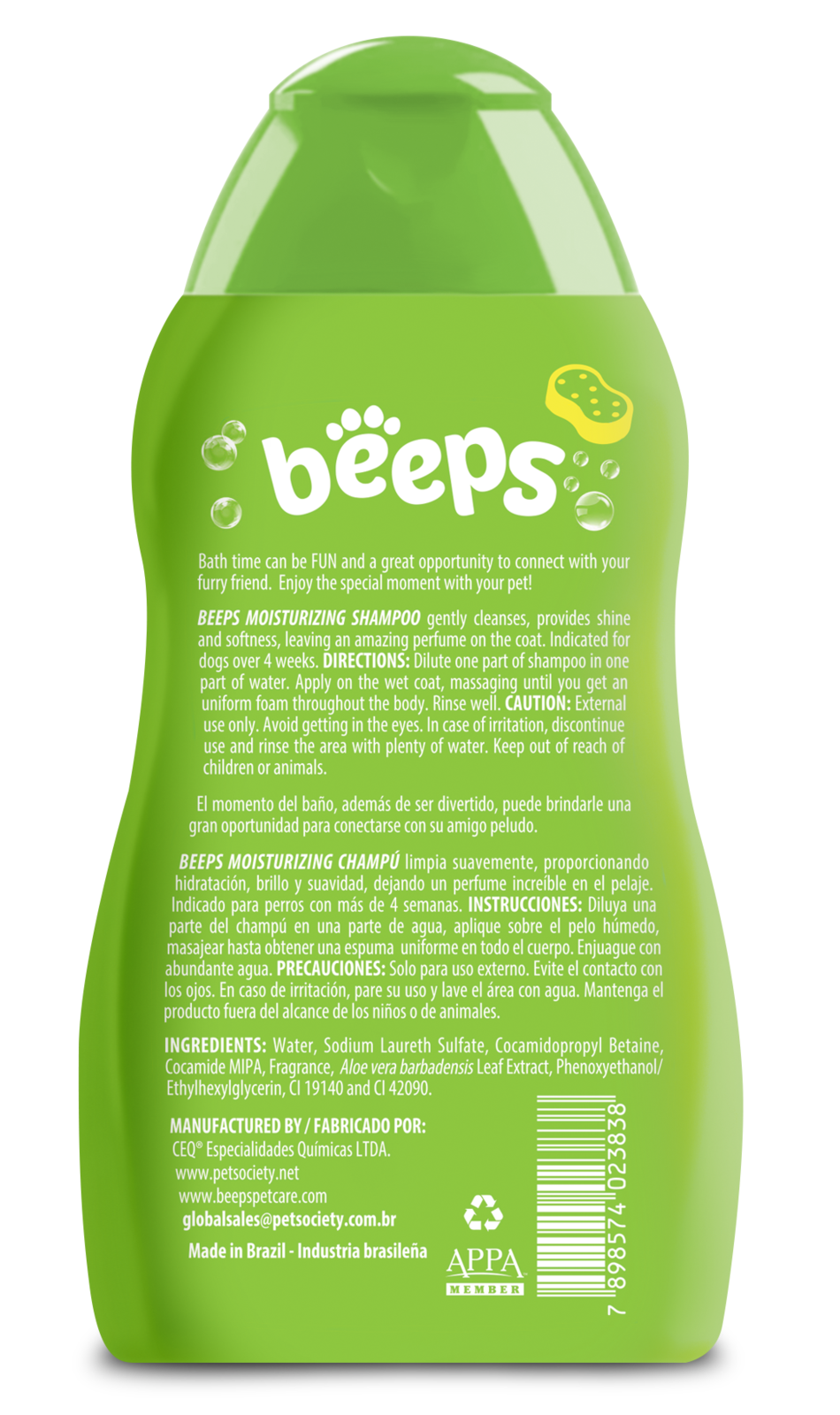 Scrub your best bud with Beeps Moisturizing Aloe Vera Dog Shampoo! This gentle formula is paw-fect for all canine companions and coat types. It features aloe vera to promote shine and softness and help prevent knots and tangles for a smooth, lustrous finish. Not only will you love how this shampoo makes your dog’s coat look and feel, but you’ll also love the way it will make him smell, thanks to the pleasant green apple scent!