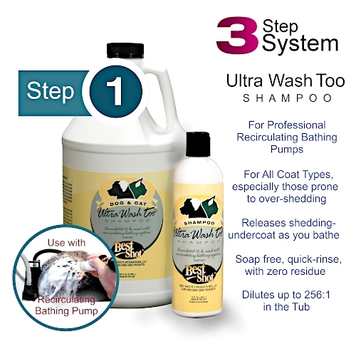 Using Best Shot’s 3-Step safely releases more shedding undercoat as you bathe, enabling your High Velocity Dryer to virtually replace all the brush-out!