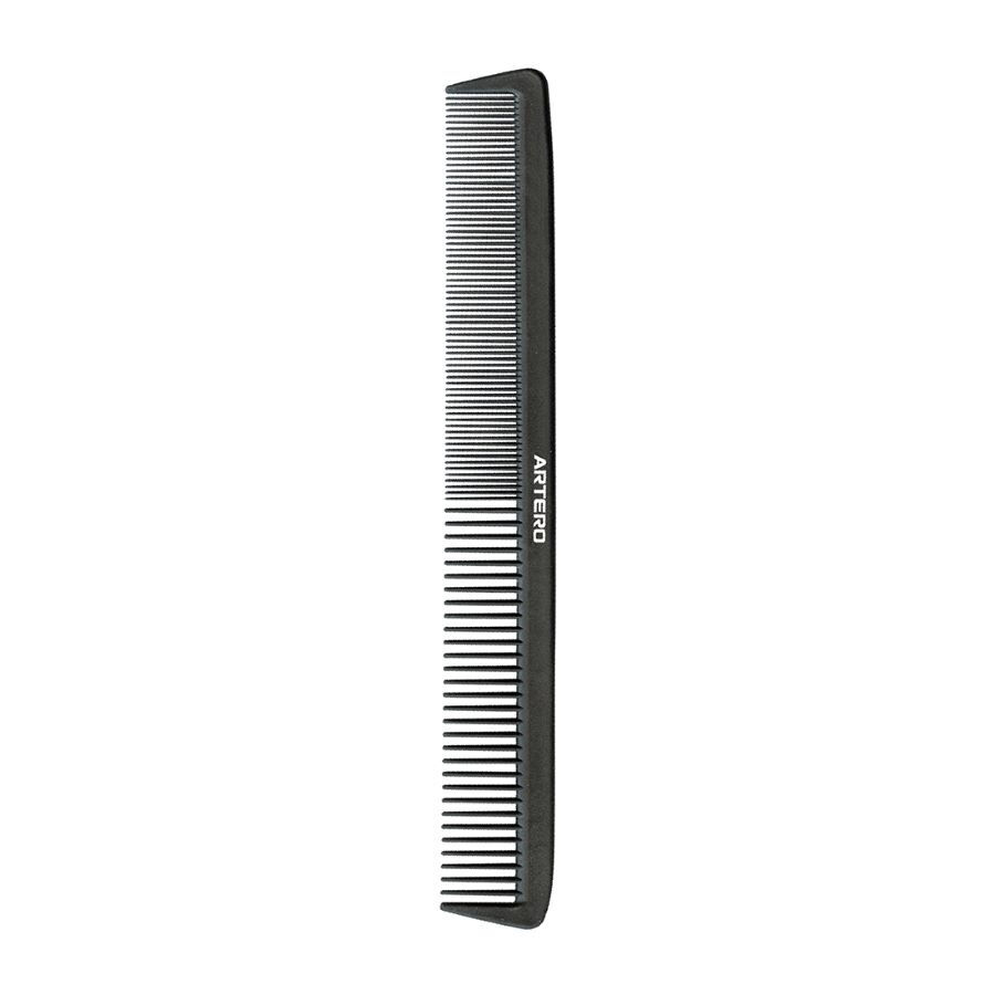 Professional extra-long cutting comb with two densities of spacing of teeth.