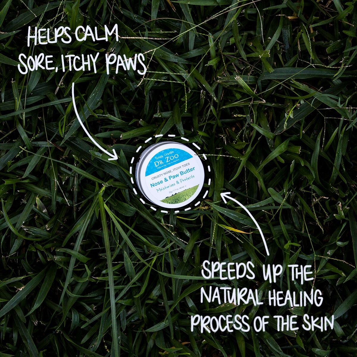 Dr Zoo Crusty Nose Itchy Toes Nose & Paw Butter moisturises, soothes, and protects from dry paws and noses.It is the perfect solution for dry, cracked paw pads and noses. Whether your pets paws are suffering from hot pavement in the summer, cold concrete in the winter or dry skin, this nourishing butter is here to help. Packed with Shea Butter and Hemp Seed Oil, it moisturizes and repairs while providing long-lasting relief. Keep your pets paws soft, smooth, and ready for their next adventure! Perfect for: Dry, cracked paws, and noses Key Ingredients: Shea Butter, Hemp Seed Oil, Coconut Oil, Beeswax Free from: Harsh chemicals, fragrances, and artificial additives Safe if ingestedcrafted with pet-friendly ingredients Dr Zoo Nose & Paw Butter is made to hydrate and protect, especially during extreme weather conditions. The intense moisturising properties of Shea Butter combined with the soothing effects of Hemp Seed Oil ensure your pets paw pads are soft and ready for walks, while their nose stays hydrated and healthy.