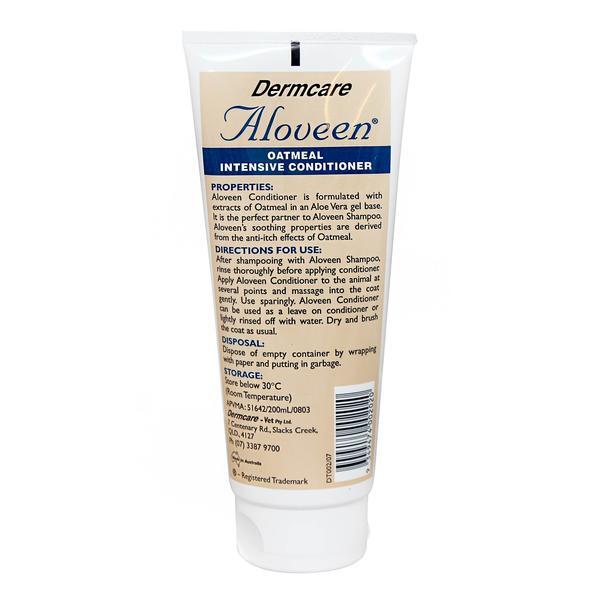 Aloveen Intensive Conditioner is a unique, concentrated residual conditioner, specifically designed as a leave on product for deeper conditioning, and to prolong the soothing effects of Aloveen Oatmeal Shampoo. It restores natural skin moisture leaving a glossy, tangle-free coat with a warm pleasant fragrance.