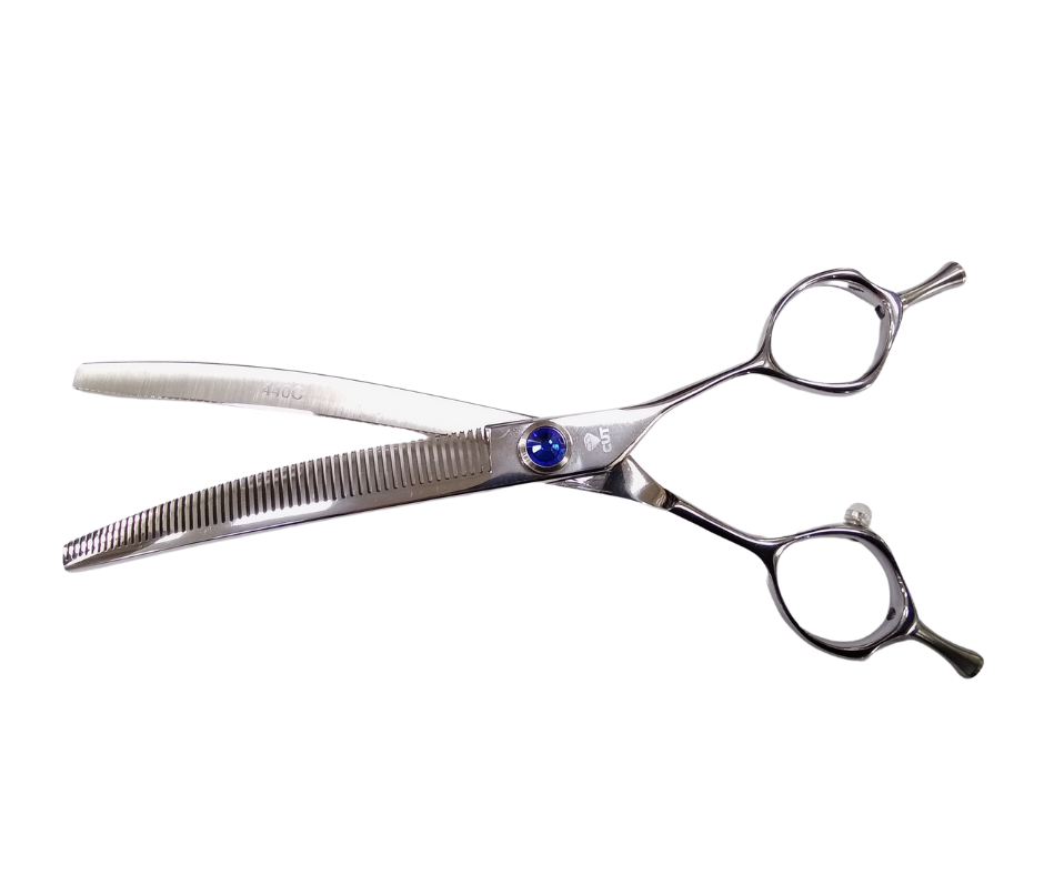 Professional grade pet grooming shears used for shortening, texturizing and blending.  Great for blending scissor lines.