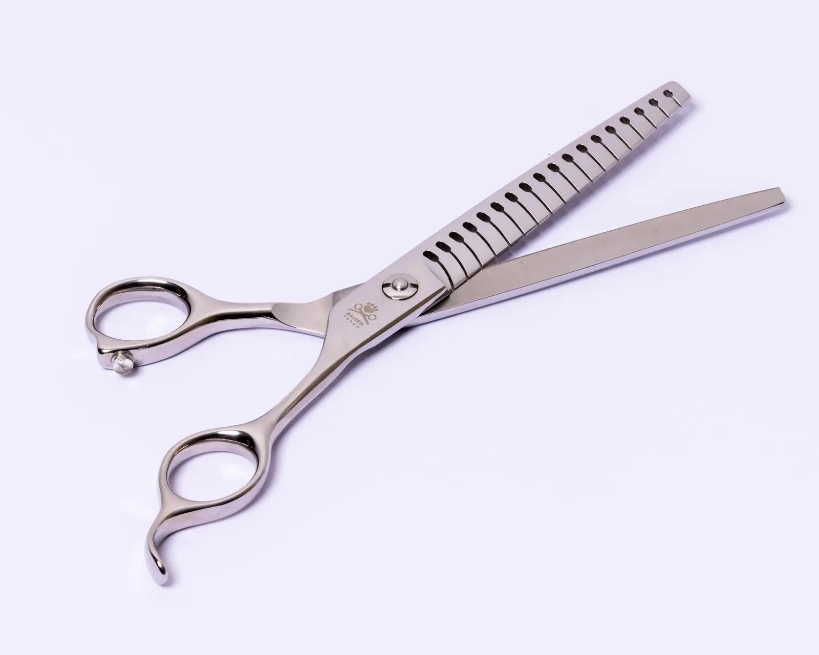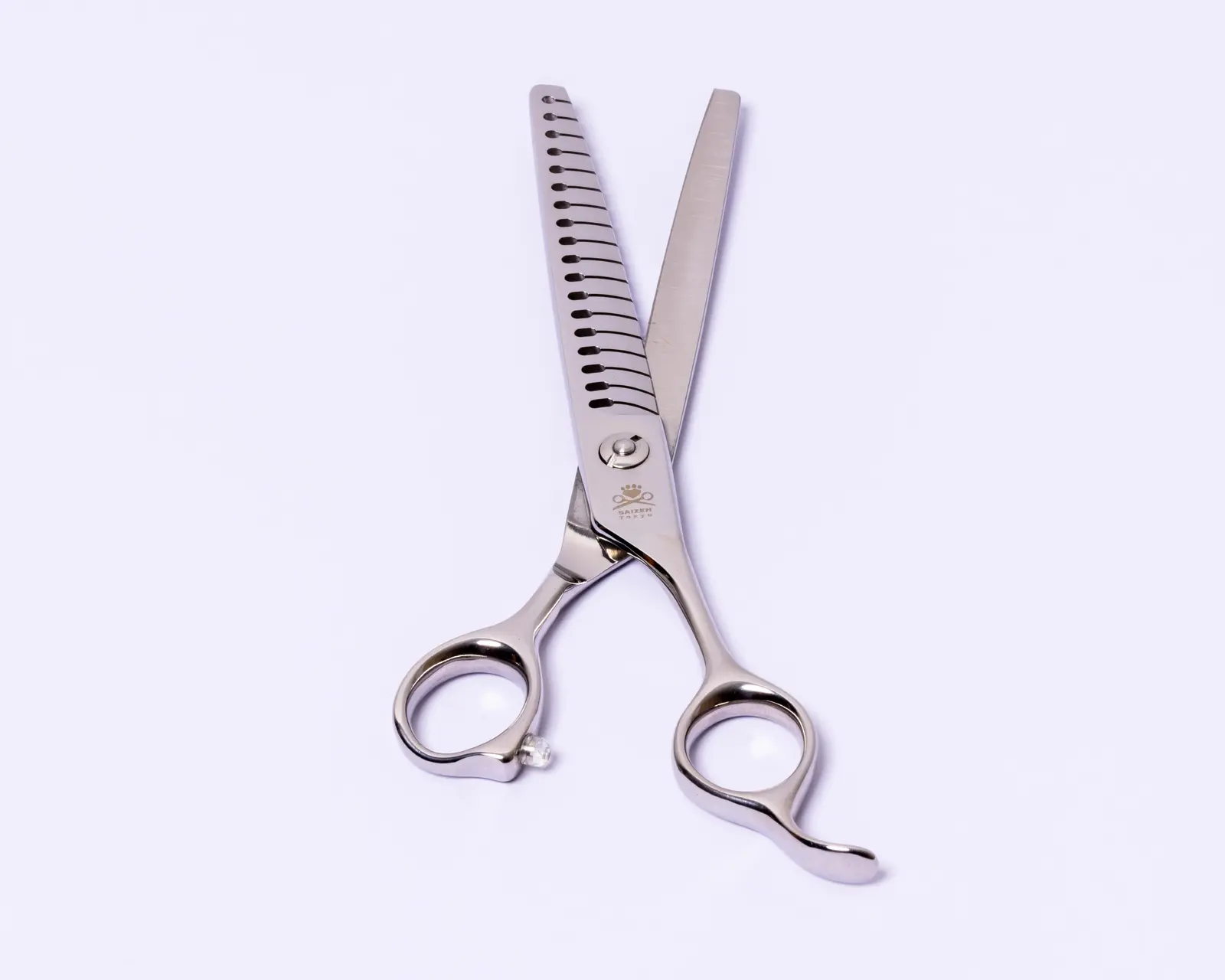 Introducing our Saizen Tokyo amazing dog grooming thinning scissors. This new ergonomically designed 7.0″ 18 teeth thinning/blending or texturising dog scissor are a fantastic all rounder. Therefore, are they suitable for most dog trims that requires a capable texturising/thinning/blending scissor. This uniquely designed texturising/blending/thinning scissor is the new ‘hybrid’ dog grooming scissor which sits between the texturising and blending scissor, but is not as wide as a “chunker” scissor. This provides a slighter wider gap between each tooth.