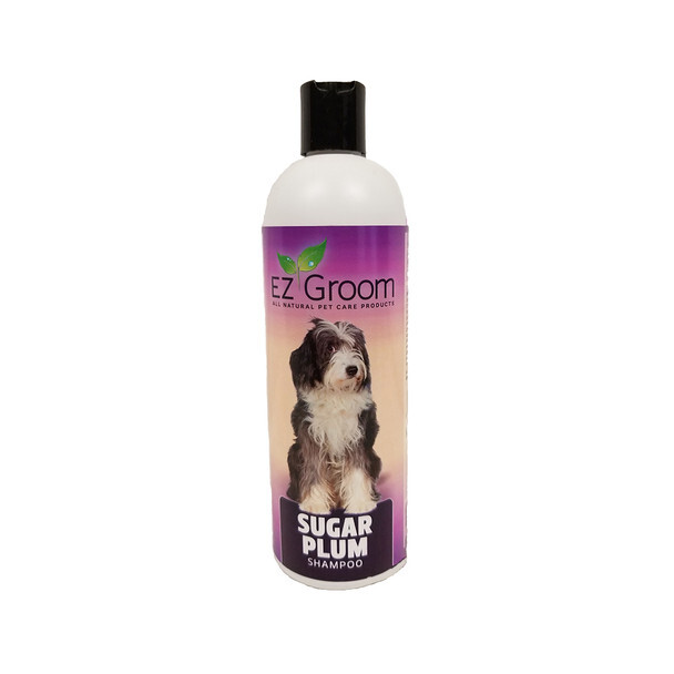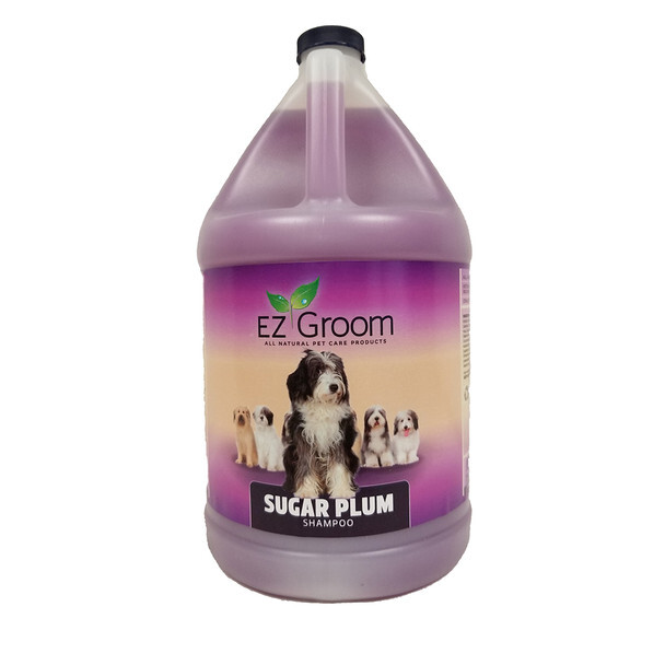 The conditioning agents of Sugar Plum Shampoo result in an EZ comb out of the coat and excellent static control. These conditioning agents are “moisture magnets“ that aid in maintaining the critical moisture.balance of the hair. This combination will re-moisturize the skin and coat, leaving both in top condition.
