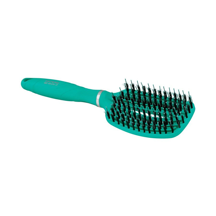 Ge-bión brush with natural boar and nylon bristles with 17 minerals that purify and eliminate toxins, detangles without pulling, thanks to its flexible body it adapts to the hair and scalp. Optimal for wet and dry hair. Improves the appearance of hair by providing shine and silkiness.