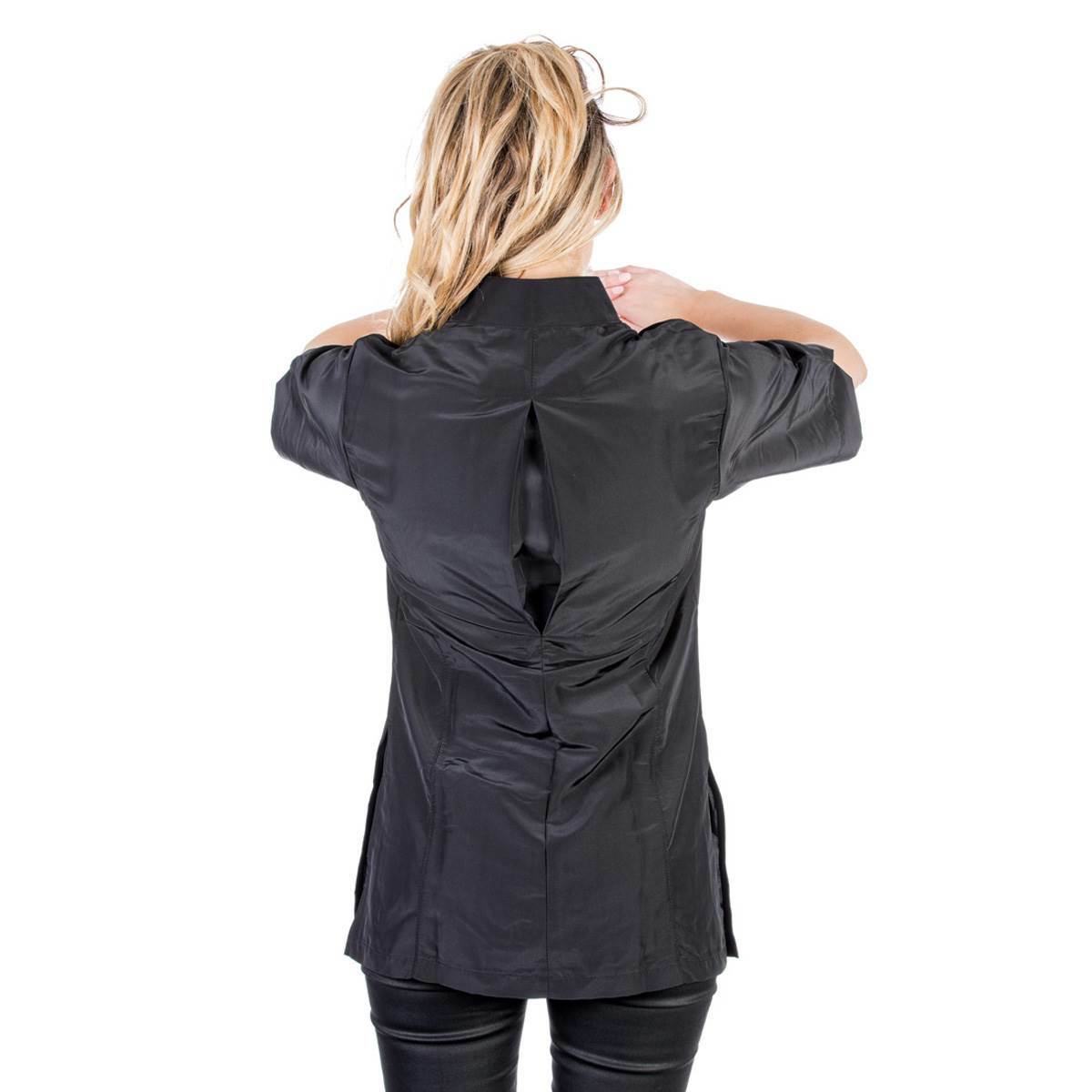 The Milano style grooming jacket is a stylish fitted jacket with full length zip, 2 pockets with flaps and a straight stand up collar.