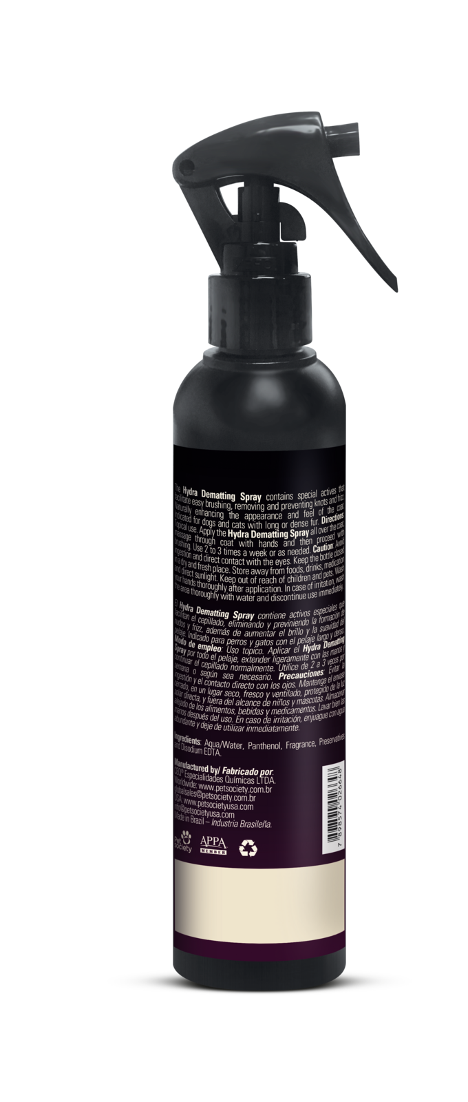 Hydra Luxury Care Dematting Spray features an easy-to-apply, light formulation that leaves the coat soft and residue-free. This leave-in conditioner helps to de-tangle the coat, removing and preventing knots and frizz.