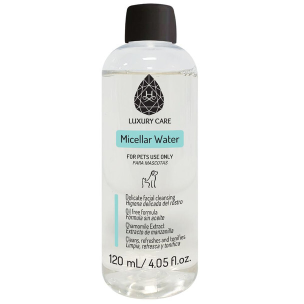 The Hydra Luxury Care Micellar Water is a non-rinse cleanser designed to safely and gently cleanse the regions around the eyes and muzzle. Perfect for neutralizing bacteria and bad odors in between wrinkles and folds on the face. It's eye-safe formula is ideal for removing secretions, staining and scabs around the eyes.