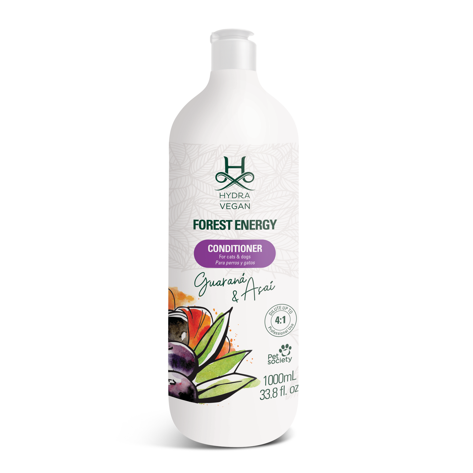 Dilute the HYDRA Vegan Forest Energy Conditioner in 4 parts of water, spread throughout the coat, massaging in the direction of the coat growth until evenly applied, rinse, and dry the coat normally.