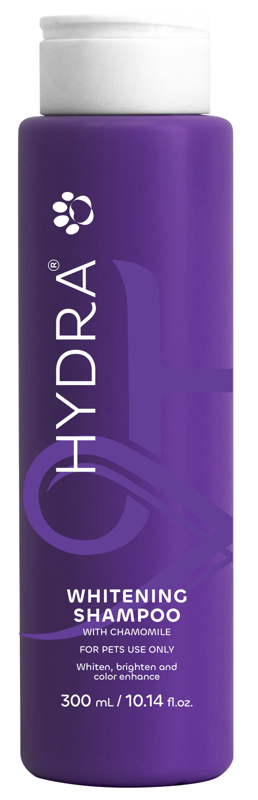 A brightness boosting, pH balanced pet shampoo formulated with soothing Oat Extract, natural color enhancing Chamomile Extract and Optical Brighteners. The Hydra Whitening Shampoos ultra-brightening and skin conscience lather is designed to cleanse, brighten and de-odorize your pets coat, while aiding in enhancing coat appearance by neutralizing yellows, reds and oranges for an even more radiant shine. The formula is ideal for dogs and cats with white + light coat types over 4 weeks of age.