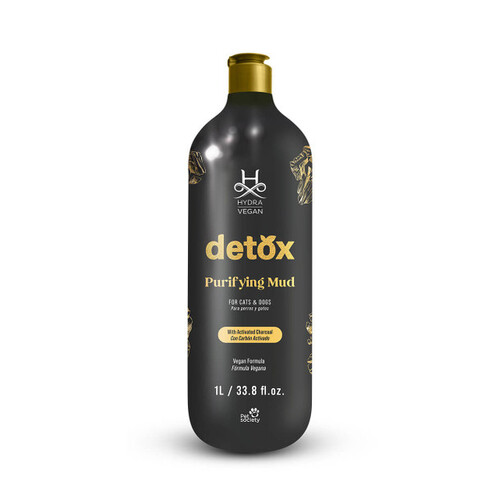 The Hydra Detox Purifying Mud contains Activated Charcoal that removes residues, impurities, and oiliness, preparing the coat for shampooing and conditioning while detoxifying and toning the skin.
