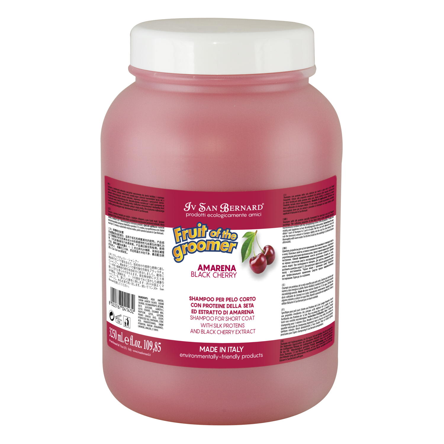 Black Cherry with silk proteins. The softening properties of the black cherry active vegetable components harmoniously combine with the strengthening virtues of the silk proteins. Specifically formulated for short-hair coats. Provides new vitality and suppleness to hair.