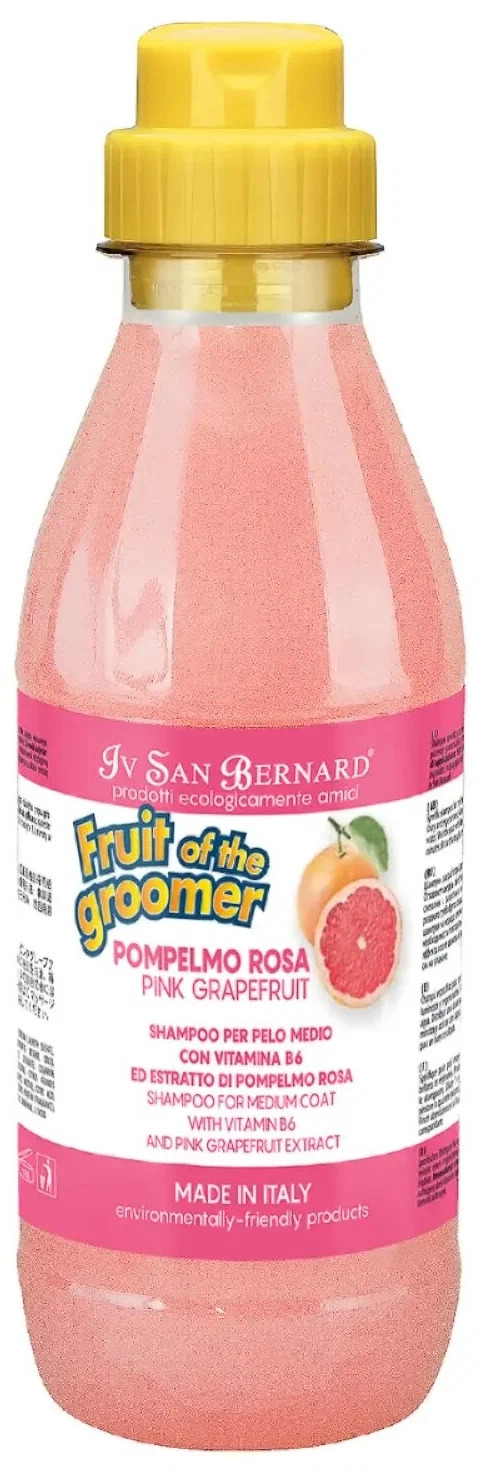 Pink grapefruit with vitamins. Invigorating and tonifying action. Specific for medium coat, leaves hair looking shiny and regenerated.