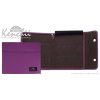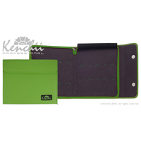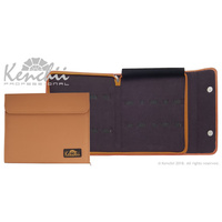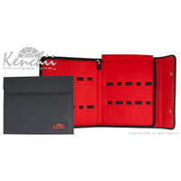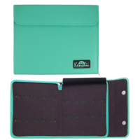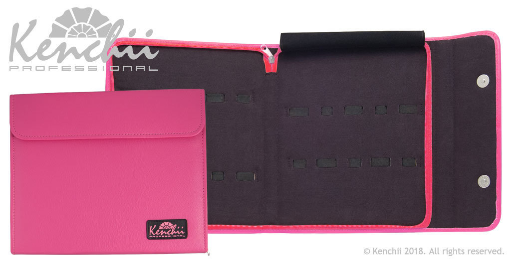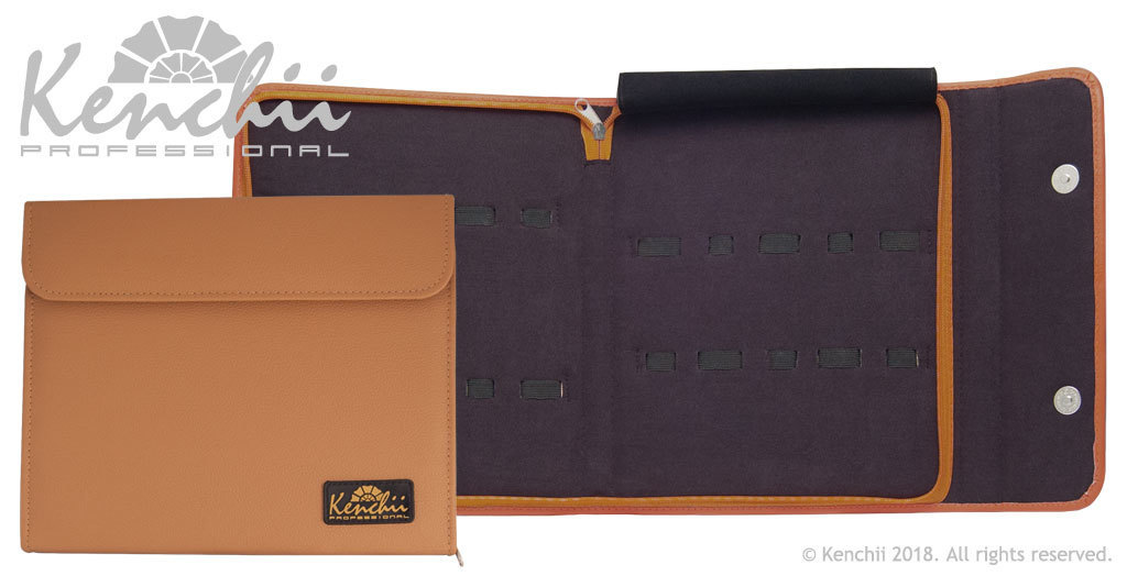 Animal-friendly premium faux leather is supple, durable, and easy to maintain. Holds up to 10 shears 10" or less with large pocket on internal flap for combs, razors, phone, etc. Closure is a 3/4 zipper and additional full height double magnetic snap flap. Utilizes an internal flap to secure and protect instruments.