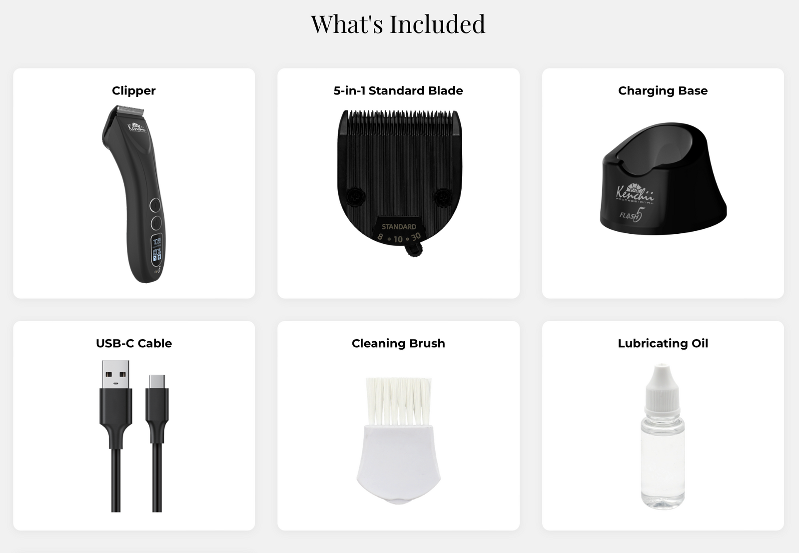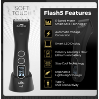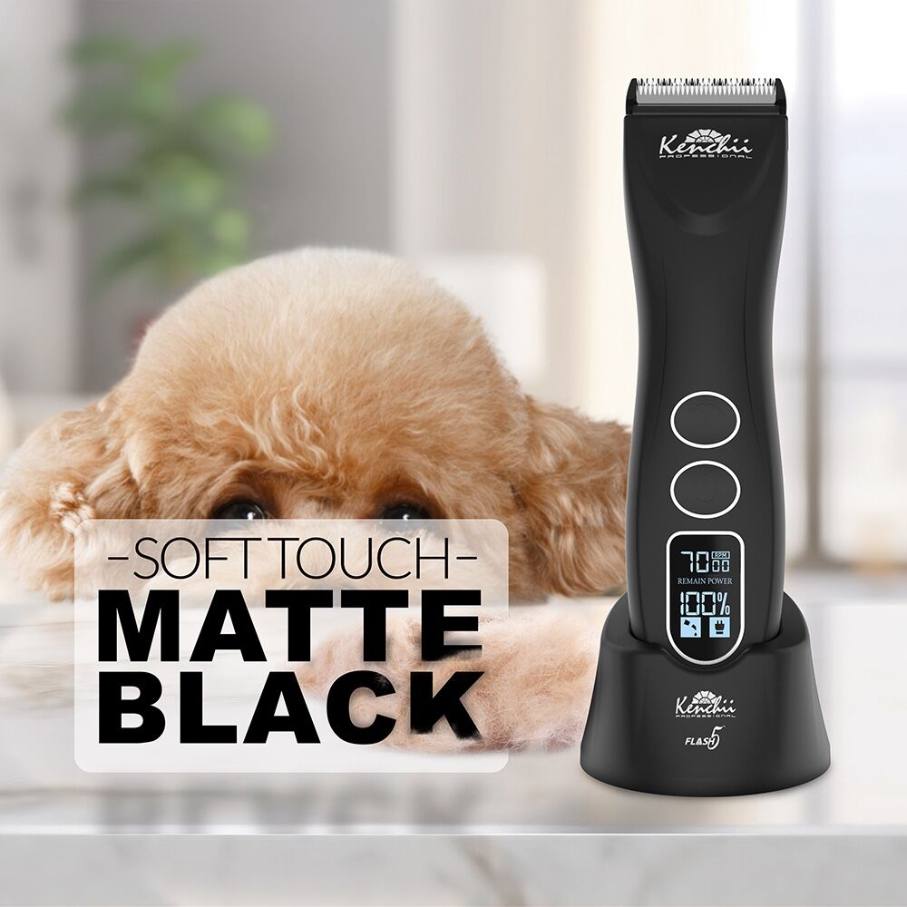 The Kenchii Flash5™ Pet Grooming Clipper has a 5-speed smart motor and industry-leading 5-hour battery life, the Flash5 ensures smooth, uninterrupted grooming sessions. Its lightweight build and quiet operation make it ideal for sensitive pets, while the adjustable blade settings cater to a variety of grooming styles.