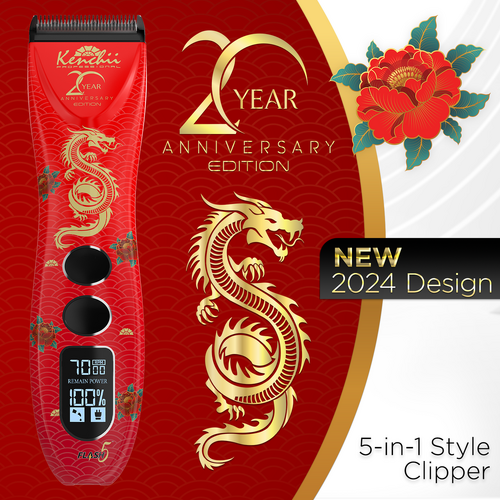 To commemorate our 20th anniversary, the 2024 Model Artwork (20th Anniversary Edition) elevates the Flash5™ Clipper, making it one of the most elegant and stylish clippers available on the market today. Celebrate excellence with Kenchii Professional and the extraordinary Flash5™ Clipper!