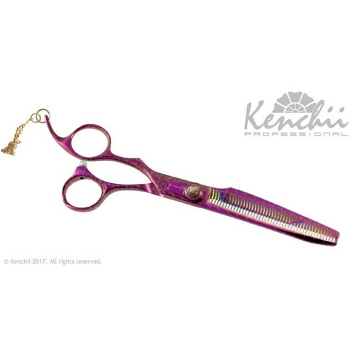 The Pink Poodle 44T thinner provides an effortless blend for even the coarsest of coats. The semi-convex edges are suitable for everyday grooming or finish work and the level 3 alloy ensures a long lasting sharp edge. With the poodle patterned finish of the bold magenta titanium and the impressive, reliable performance this shear is truly unique!