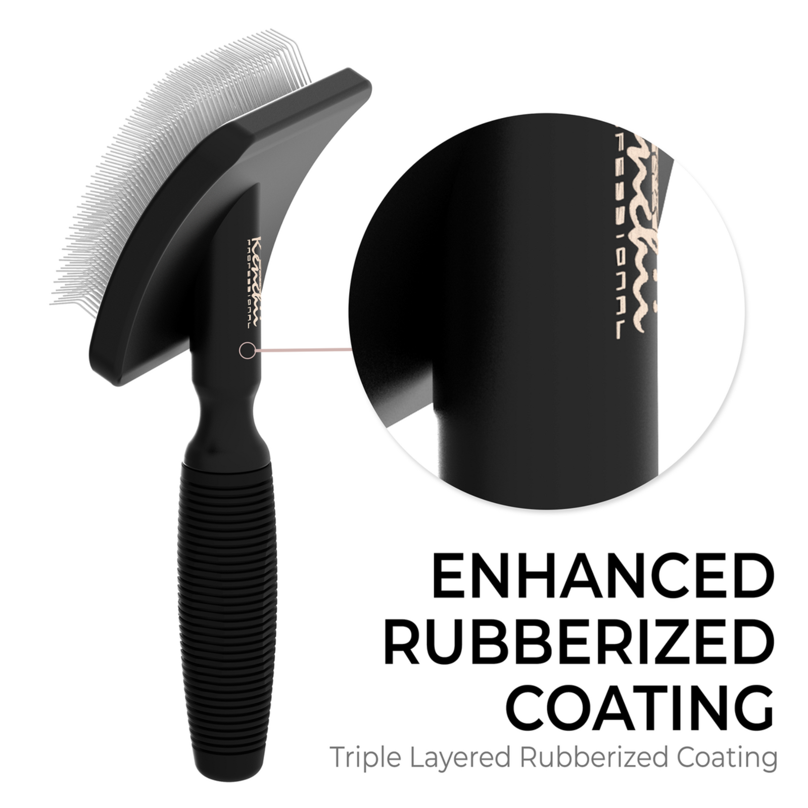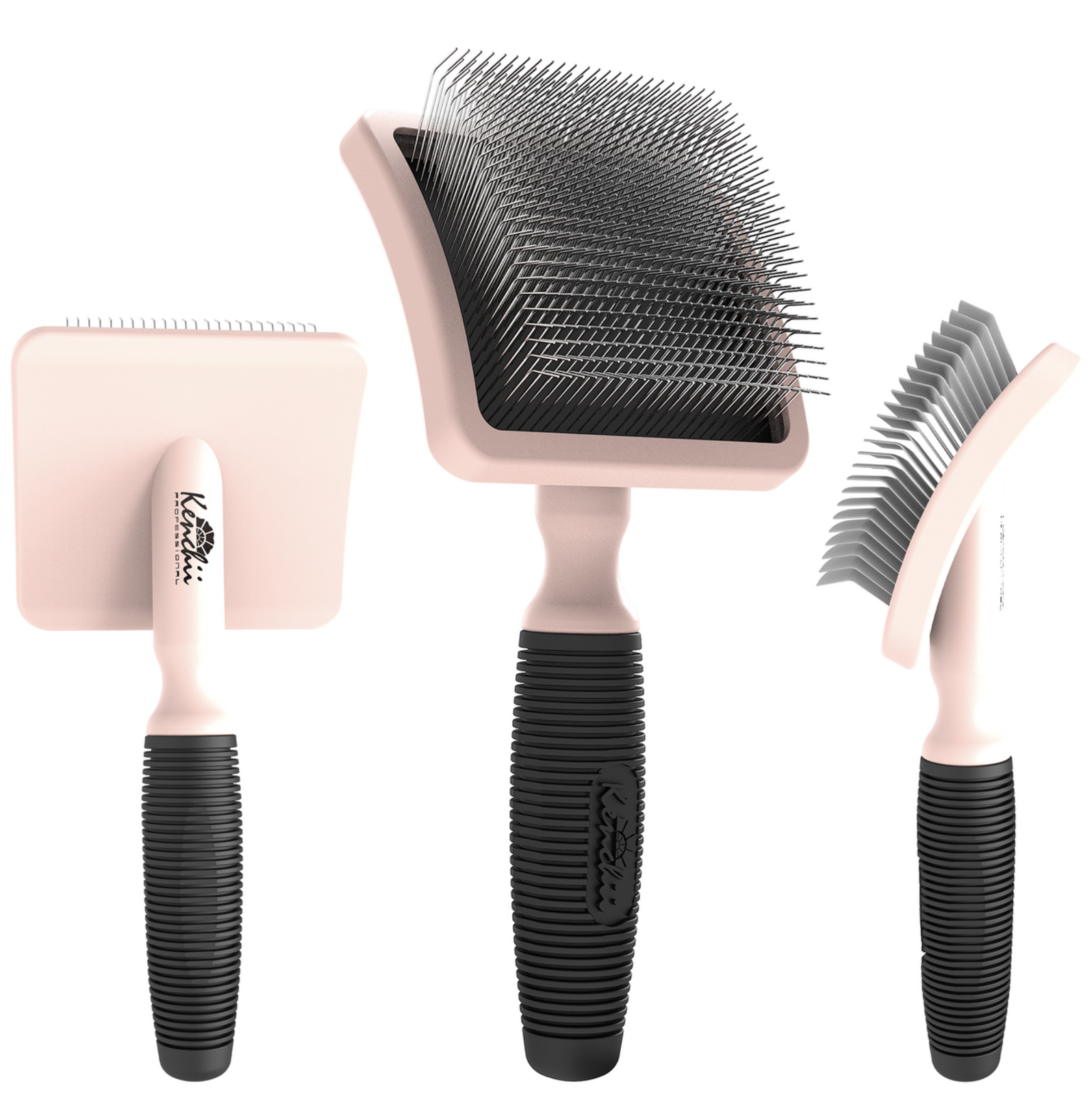 Experience next-level grooming with the Kenchii Professional Long Pin Slicker Brush. Expertly engineered for professional groomers, its long, polished stainless steel pins penetrate deep into the coat to remove loose fur, tangles, and mats with exceptional ease and comfort. The soft-cushioned backing helps prevent brush burn, while the ergonomic, non-slip rubber handle ensures total control and reduced hand fatigue.