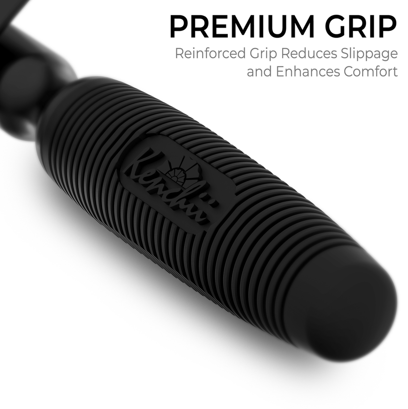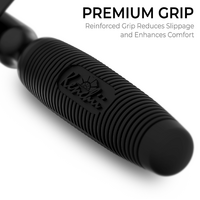 Soft, rubber, ergonomic handle offers a secure, comfortable grip for long grooming sessions.